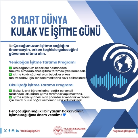 İşitme kaybıyla doğan ya da doğum sonrası dönemde işitme kaybı olan çocukların erken dönemde tespit edilmesi, uygun tedavi ve rehabilitasyon uygulamalarının yapılması amacıyla Bakanlığımız tarafından Yenidoğan İşitme Taraması Programı yürütülmektedir.
